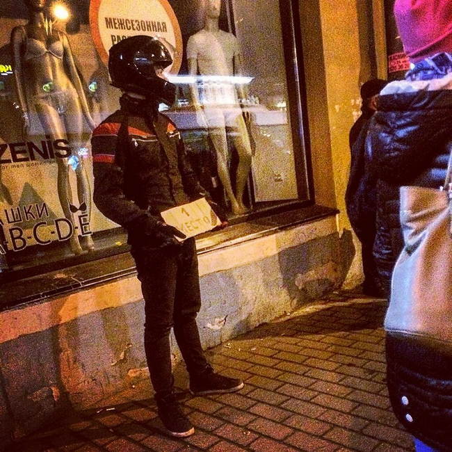 На фото @anna_smirnaya человек в мотоциклетном шлеме предлагает подвезти всех желающих.